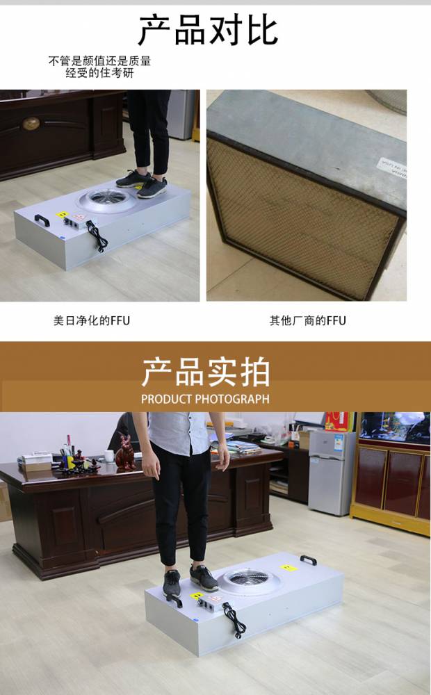 FFU風機過濾機組控制采用其公司開發(fā)之非接觸感應(yīng)式三檔調(diào)速,電路均采用電器開關(guān)控制,控制安全平穩(wěn)。彈性、多元化配置除標準機型外,可根據(jù)客戶需求,制作不同規(guī)格的非標產(chǎn)品。如:風管連接法蘭、濾網(wǎng)、箱體材質(zhì)等變更。人性化設(shè)計機組附裝不銹鋼把手,使搬運及安裝更為方便快捷。