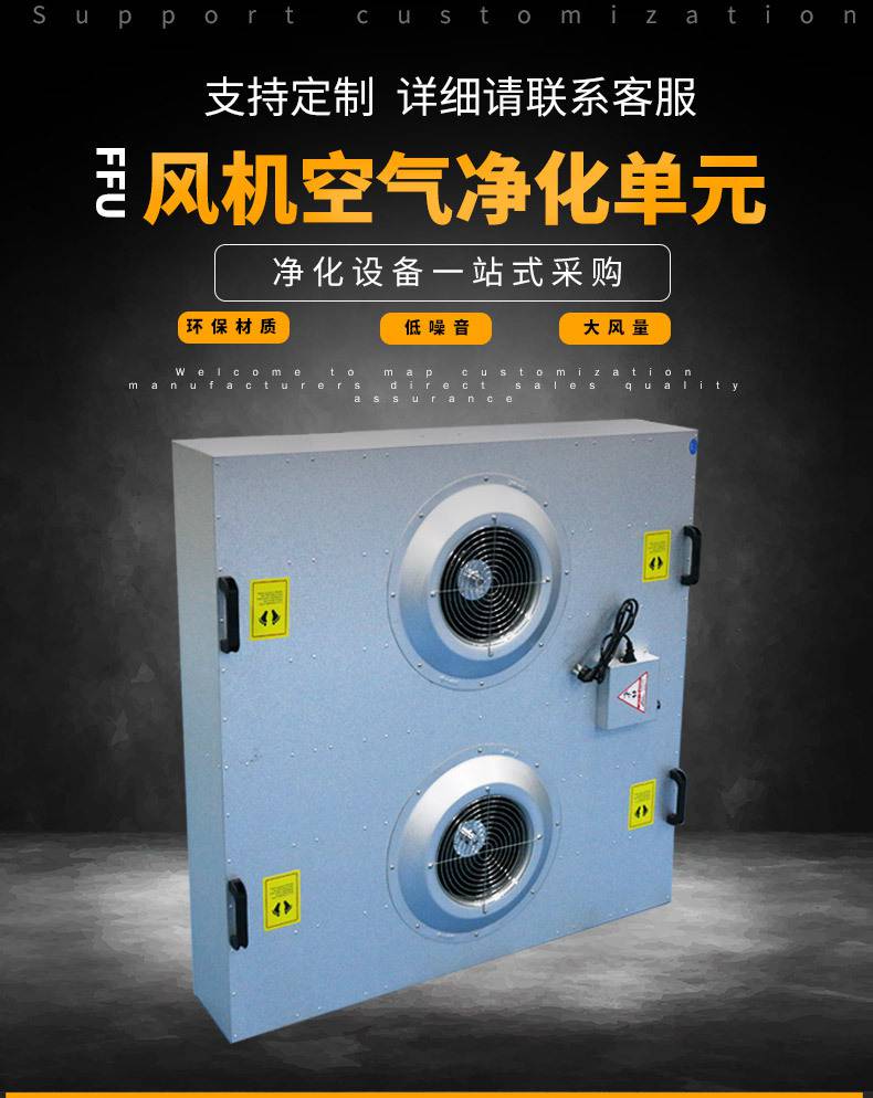 FFU風(fēng)機(jī)過(guò)濾機(jī)組控制采用其公司開(kāi)發(fā)之非接觸感應(yīng)式三檔調(diào)速,電路均采用電器開(kāi)關(guān)控制,控制安全平穩(wěn)。彈性、多元化配置除標(biāo)準(zhǔn)機(jī)型外,可根據(jù)客戶(hù)需求,制作不同規(guī)格的非標(biāo)產(chǎn)品。如:風(fēng)管連接法蘭、濾網(wǎng)、箱體材質(zhì)等變更。人性化設(shè)計(jì)機(jī)組附裝不銹鋼把手,使搬運(yùn)及安裝更為方便快捷。