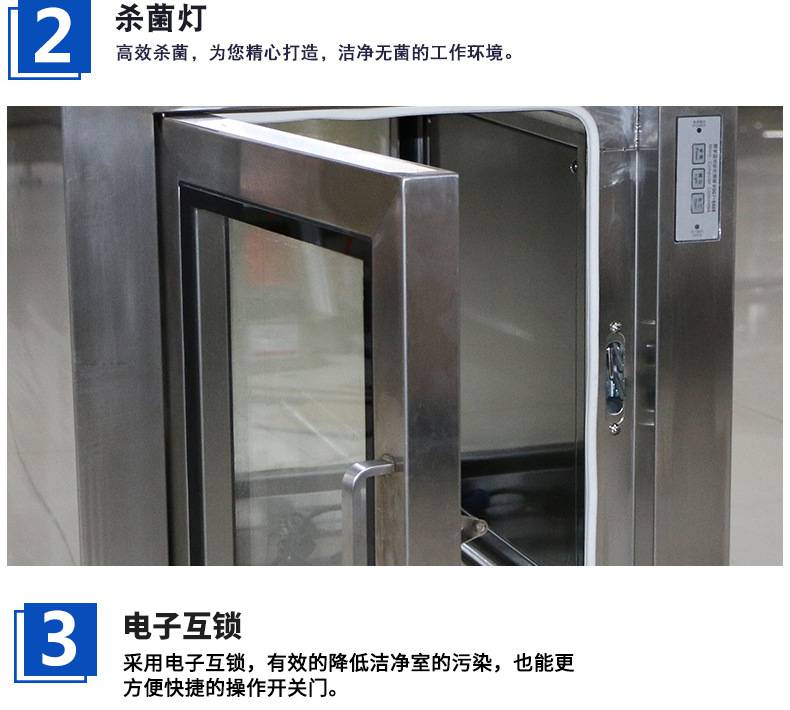 ⒈短距離傳遞窗工作臺面采用不銹鋼板,平整光潔耐磨