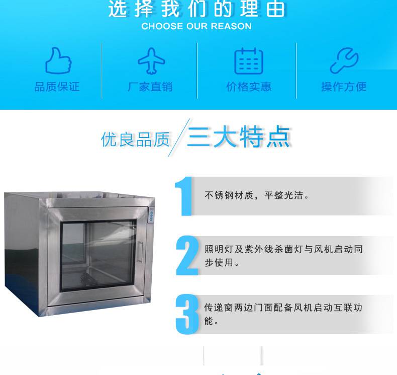 ⒈短距離傳遞窗工作臺面采用不銹鋼板,平整光潔耐磨