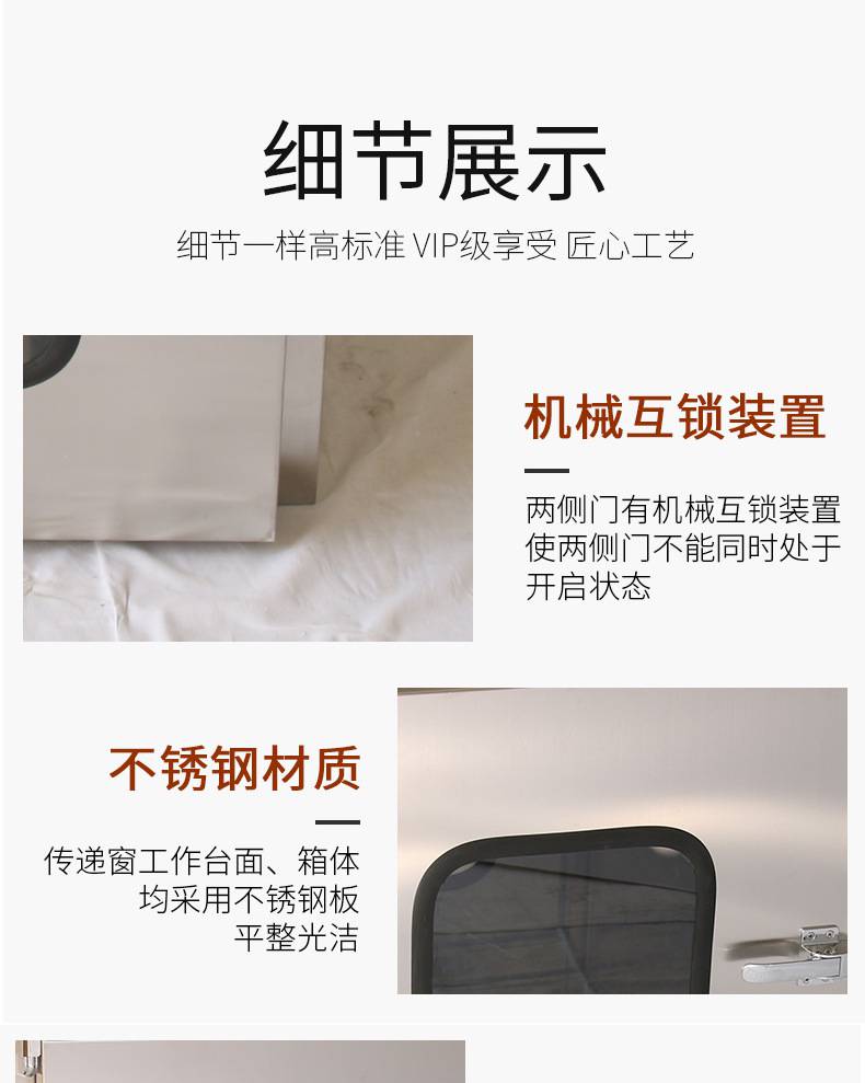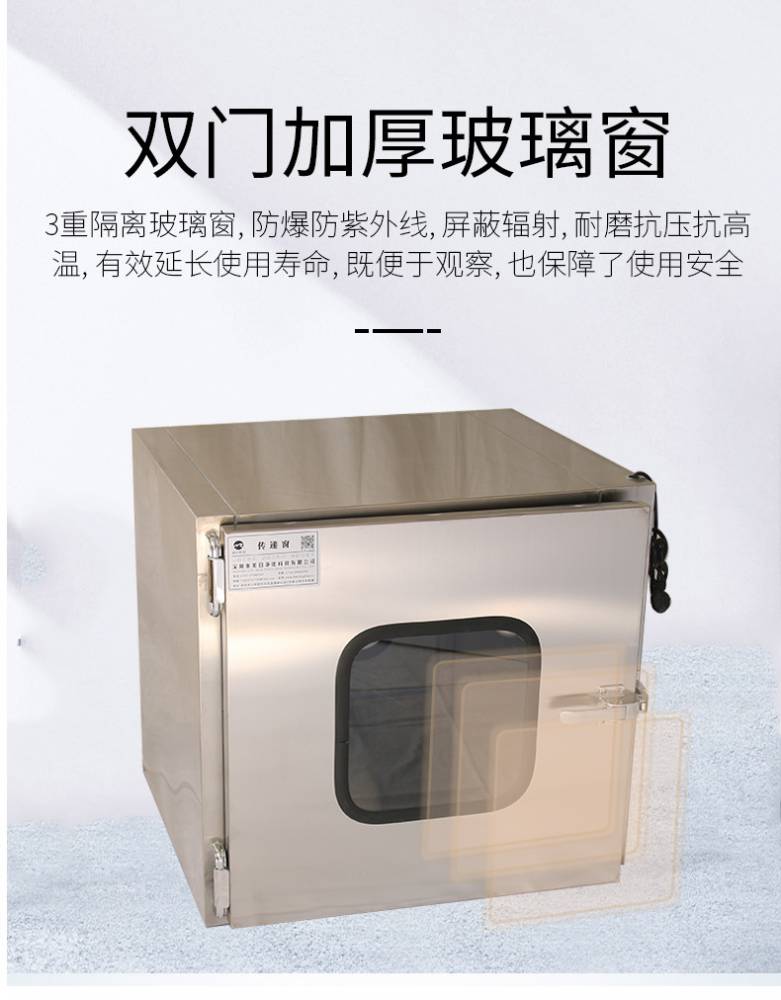 ⒈短距離傳遞窗工作臺面采用不銹鋼板,平整光潔耐磨