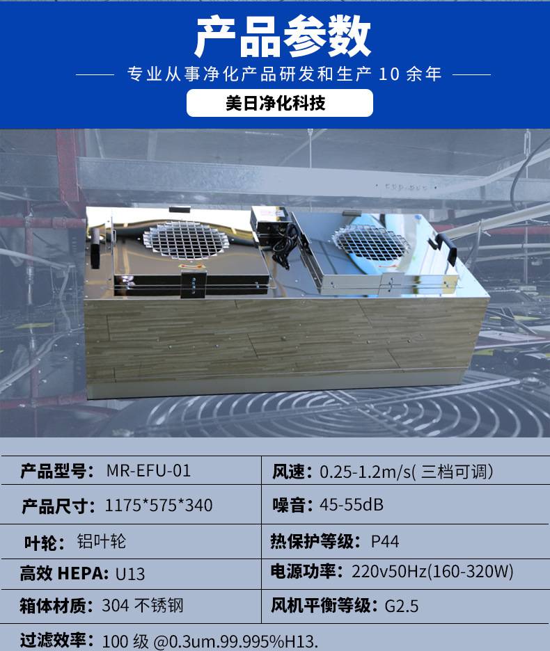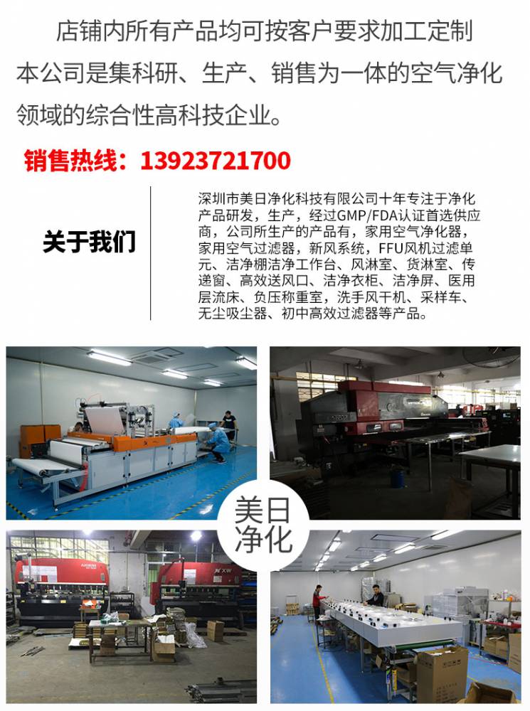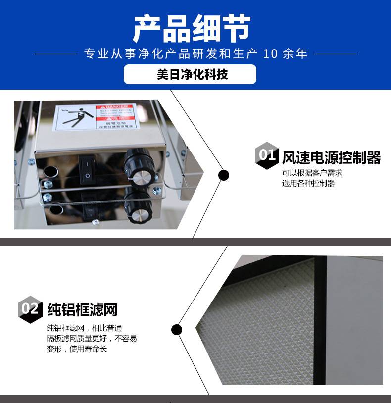 FFU風(fēng)機(jī)過濾機(jī)組控制采用其公司開發(fā)之非接觸感應(yīng)式三檔調(diào)速,電路均采用電器開關(guān)控制,控制安全平穩(wěn)。彈性、多元化配置除標(biāo)準(zhǔn)機(jī)型外,可根據(jù)客戶需求,制作不同規(guī)格的非標(biāo)產(chǎn)品。如:風(fēng)管連接法蘭、濾網(wǎng)、箱體材質(zhì)等變更。人性化設(shè)計(jì)機(jī)組附裝不銹鋼把手,使搬運(yùn)及安裝更為方便快捷。